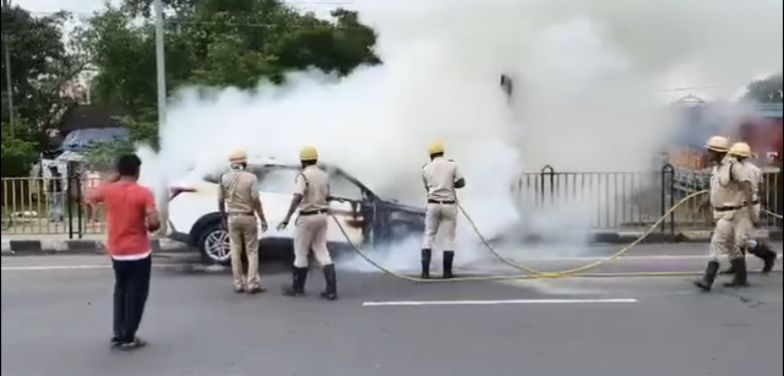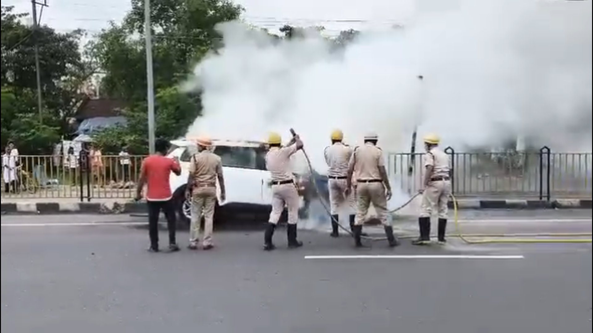 নিউজ ডেস্কঃ হঠাৎই দাউ দাউ করে জ্বলে উঠল ছুটে চলা একটি চারচাকার ছোটো গাড়ি। ধোঁয়ায় ঢেকে যায় এলাকা। আকস্মিক এই ঘটনায় চাঞ্চল্য ছড়ায় ১৯ নম্বর জাতীয় সড়কের উপর দুর্গাপুর মেনগেট এলাকার কাদারোডে। খবর পেয়ে ঘটনাস্থলে পৌঁছয় দমকলের একটি ইঞ্জিন। ঘটনাস্থলে হাজির হয় দুর্গাপুর থানার পুলিশও।